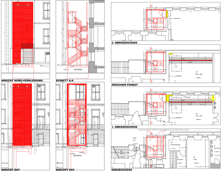 - neue Fluchttreppe an denkmalgeschütztes Hörsaalgebäude des Anatomischen Instituts der Universität Würzburg