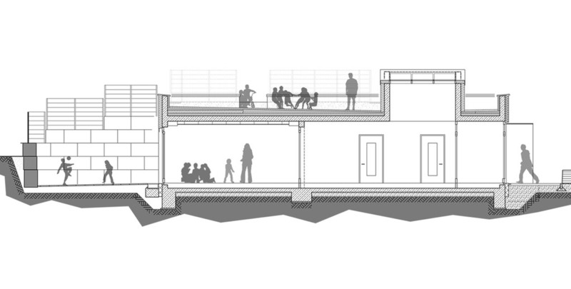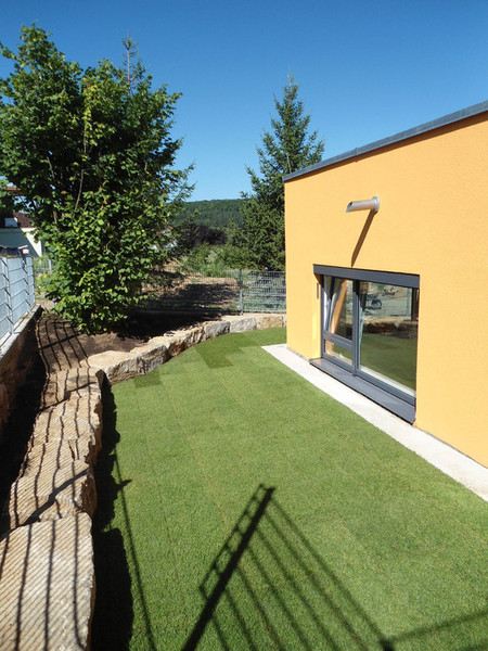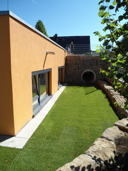 - Außenspielfläche mit Kriechröhre und Rutsche vom Dach in den Innenhof