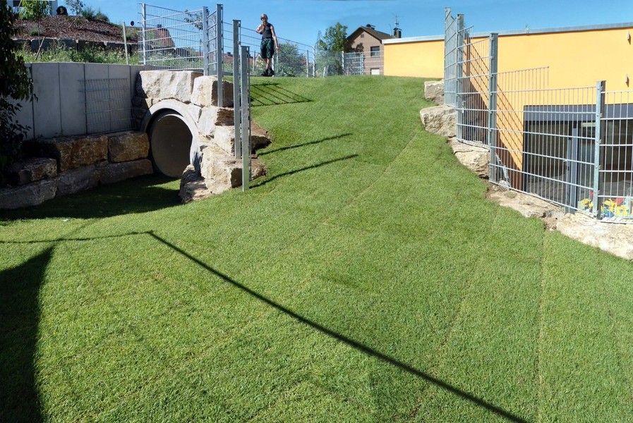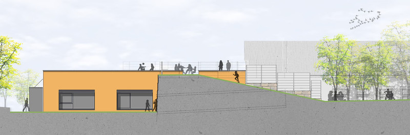 - die durch den Neubau entfallene Spielfläche wurde durch Spielfläche auf der Dachfläche der neuen Krippe kompensiert