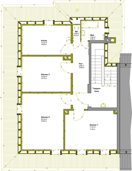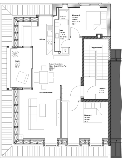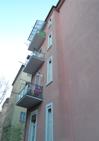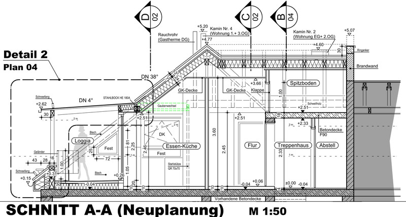 - Schaffung von zusätzlichem Wohnraum im Dach durch neue Loggia und hofseitiger Aufmauerung eines Zimmers