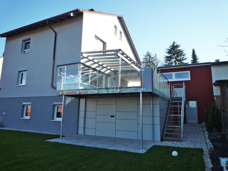 - neue Balkon- und Terrassengeländer (Edelstahl mit Glas)