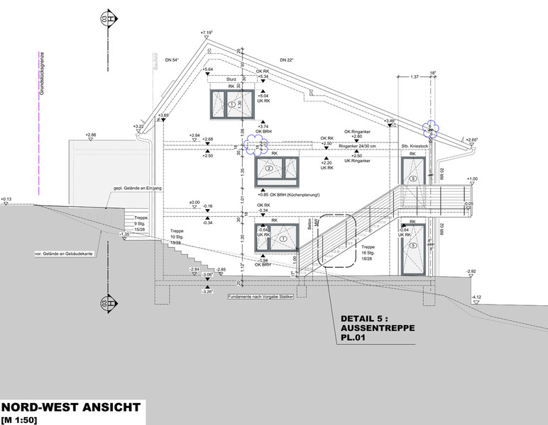 - assymmetrisches Dach (aus dem Wohnen mit Luftraum und Räumen im Dach entwickelt)